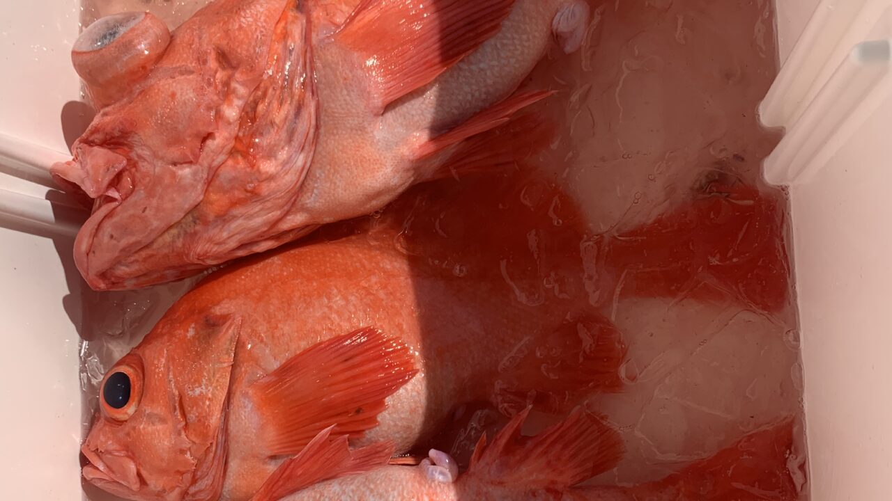 アコウダイは水深200〜600mに生息する深海魚で、体は鮮やかな赤色をしており、釣り人に人気のターゲットです。