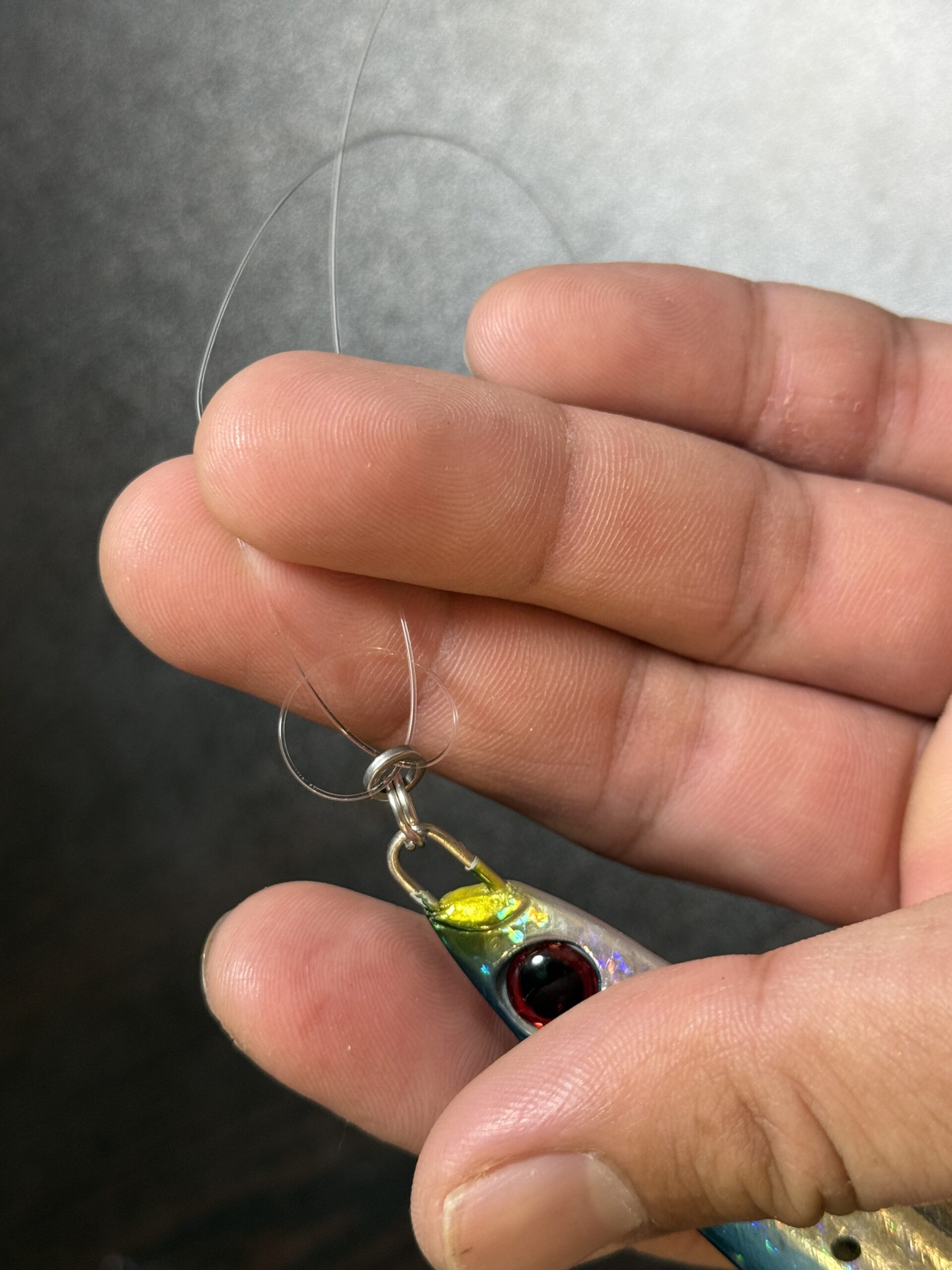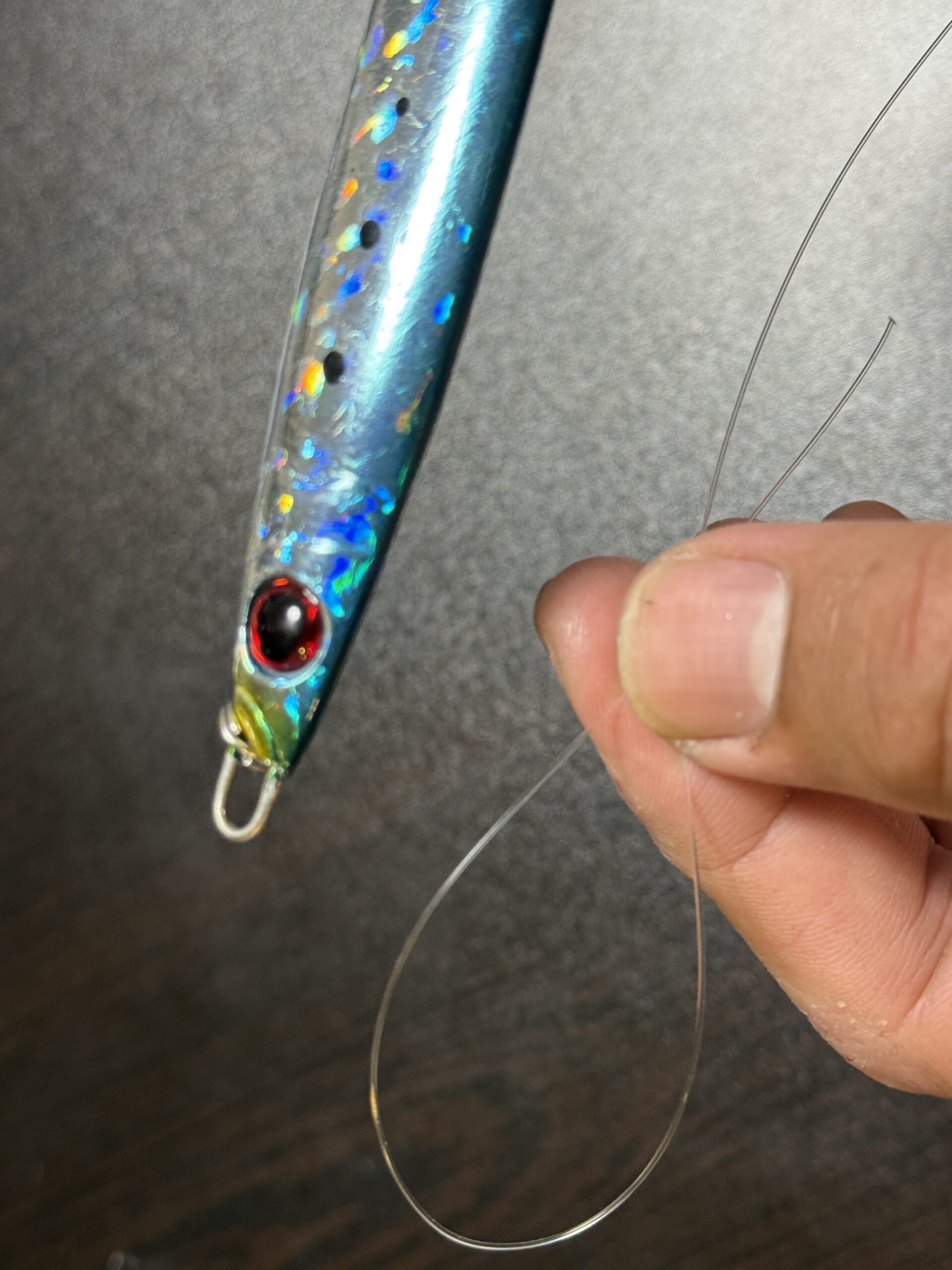 スロージギングでは、ラインとジグを確実に結ぶことがとても重要です。
