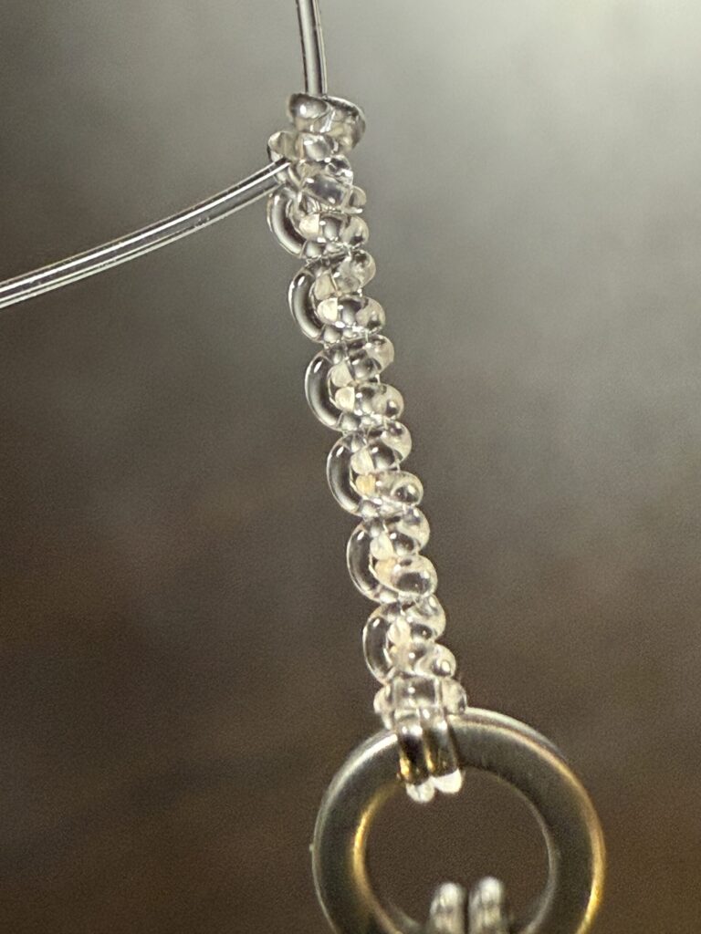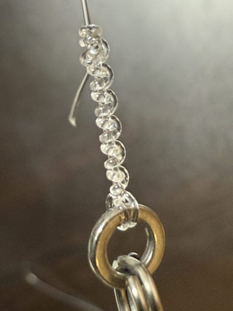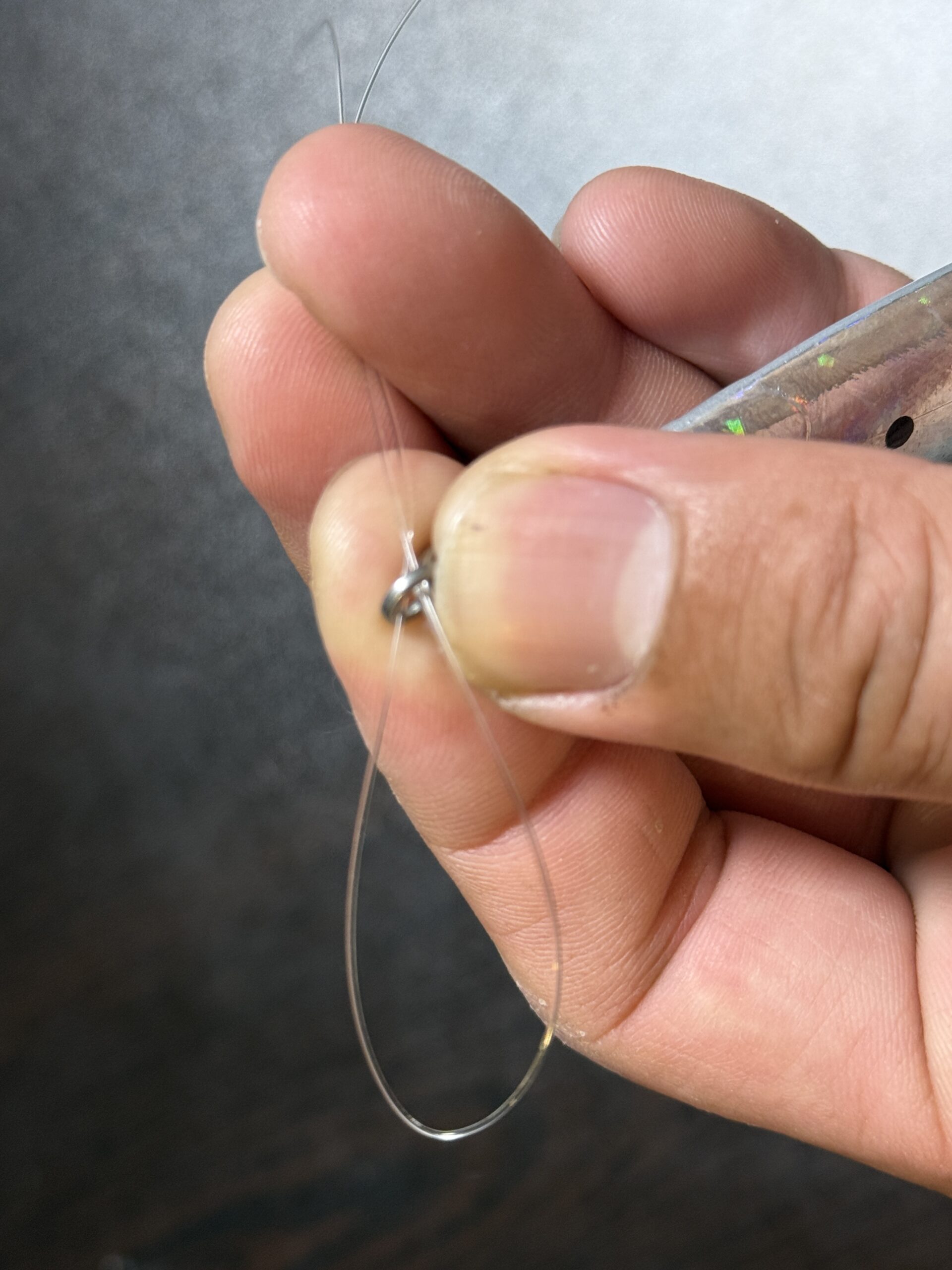 - リーダーの輪っかをジグ(スプリットリング)に通します。